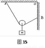 (a)所示,将一条轻而柔软的细绳一端拴在天花板上的A点.另一端拴在竖直墙上的B点,A和B到O点的距离相等,绳的长度是OA的两倍,图(b)所示为一质量可忽略的动滑轮K,滑轮下悬挂一质量为m的重物,设摩擦力可忽略,现将动滑轮和重物一起挂到细绳上,在达到平衡时,绳所受的拉力是多大?(10分)如图15所示,将一条轻而柔软的细绳一端固定在天花板上的A点,另一端固定在竖直墙上的B点,A和B到O点的距离相等,绳长为OA的两倍.滑轮的大小与质量均可忽略,滑轮下悬挂一质量为m的重物.设摩擦力可忽略,求平衡时绳所受的拉力为多大?