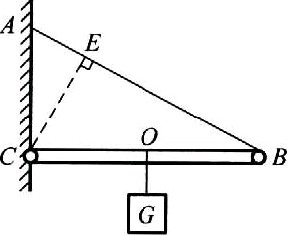 BC的C端铰接于墙,B点用绳子拉紧,在BC中点O挂重物G.当以C为转轴时,绳子拉力的力臂是A.OB