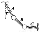 如图所示,用完全相同的轻弹簧A、B、C将两个相同的小球连接并悬挂,小球处于静止状态,弹簧A与竖直方向的夹角为37o(sin37o=0.6),弹簧C水平,则弹簧A、C的伸长量之比为![]()