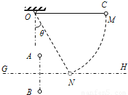 (10分)如图所示,在同一条竖直线上,有电荷量均为Q的A、B两个正点电荷,; GH是它们连线的垂直平分线.另有一个带电小球C,质量为m、电荷量为+q(可视为点电荷),被长为l的绝缘轻细线悬挂于O点,现在把小球C拉起到M点,使细线水平且与 A、B处于同一竖直面内,由静止开始释放,小球C向下运动到GH线上的N点时刚好速度为零,此时细线与竖直方向的夹角
