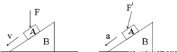 如图甲所示,质量为M的直角劈B放在水平面上,在劈的斜面上放一个质量为m的物块A,用一个竖直向下的力F作用于A上,物体A刚好沿斜面匀速下滑,若改用一个斜向下的力F'作用在A时,物体A加速下滑,如图乙所示,则在图乙中关于地面对劈的摩擦力f及支持力FN的结论正确的是( )