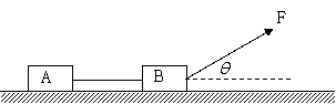 如图所示,质量为m=10kg的两个完全相同的物块A、B(之间用轻绳水平相连)放在水平地面上,在与水平方向成θ=37°角斜向上、大小为100N的拉力F作用下,以大小为v0=4.0m/s的速度向右做匀速直线运动,求剪断轻绳后物块A沿水平面滑行的距离。![]()