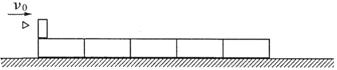 如图所示,五块完全相同的长木板依次紧挨着放在水平地面上,每块木板的长度为L=0.5m,质量为M=0.6 kg。在第一块长木板的最左端放置一质量为m=0.98 kg的小物块。已知小物块与长木板间的动摩擦因数为μ1=0.2,长木板与地面间的动摩擦因数为μ2=0.1,设最大静摩擦力与滑动摩擦力相等。一颗质量为m0=0.02 kg的子弹以的υ0=150 m/s水平速度击中小物块并立即与小物块一起在长木板表面滑行,重力加速度g取10 m/s2。