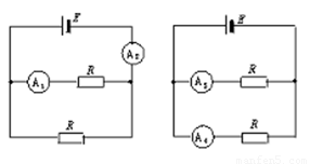 如图所示的两种电路中,电源相同,各电阻器阻值相等,各电流表的内阻相等且不可忽略不计.电流表A1、A2、A3和A4读出的电流值分别为I1、I2、I3和I4.下列关系式中正确的是( )![]()