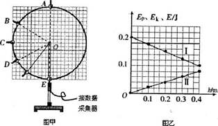 (1)第一组同学通过数据采集器采集小球运动半周内的A、B、C、D、E五个位置的数据,选择以图象方式显示实验的结果,所显示的图象如图乙所示.图象的横轴表示小球距E点的高度h ,纵轴表示小球的重力势能EP、动能EK或机械能E(选E点所在水平面为参考平面).①在图乙中,表示小球的重力势能EP随高度h变化关系的图线是 (选填“I’’或“Ⅱ’’);②根据图乙中数据,在答题纸的图中画出小球的机械能E随高度h变化关系的图线;③根据所作图线判断小球在这半周内处于 阶段(选填“上升’’或“下降”)
