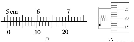 用20分度的游标卡尺测量某物体的长度如图甲所示,可知其长度为________ mm;用螺旋测微器测量某圆柱体的直径如图乙所示,可知其直径为________ mm;![]()