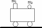 如图所示,在上表面光滑的小车上放有质量m1的物块和质量为m2的小球,且m1>m2,开始时物块,小车.小球一起在水平面上匀速运动,现让小车向右匀加速运动则
