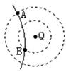 如图所示,在点电荷Q产生的电场中,虚线表示等势面,实线表示α粒子(带正电)穿过电场时的轨迹,A、B为轨迹与两等势面的交点,则下列说法正确的是( )![]()