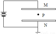 如图所示,两块相对平行金属板 M、N 与电池相连,N 板接地,在距两板等远的 P 点固定一个带正 电的点电荷,如果 M 板向上平移一小段距离,则    (  )
