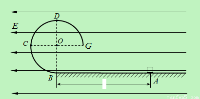 圆形轨道,位于竖直平面内,轨道半径为R, 下端与水平绝缘轨道在B点平滑连接,整个轨道处在水平向左的匀强电场中.