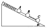 如图所示,A、B、C三球的质量均为m,轻质弹簧一端固定在斜面顶端、另一端与A球相连,A、B间由一轻质细线连接,B、C间由一轻杆相连.倾角为θ的光滑斜面固定在地面上,弹簧、细线与轻杆均平行于斜面,初始系统处于静止状态,细线被烧断的瞬间,下列说法正确的是( )![]()