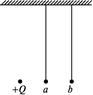如图所示,水平天花板下用长度相同的绝缘细线悬挂起来的两个相同的带电介质小球a、b,左边放一个带正电的固定球+Q时,两悬球都保持竖直方向.下面说法中正确的是( )![]()