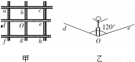 杂技表演的安全网如图甲所示,网绳的结构为正方形格子,O、a、b、c、d……等为网绳的结点,安全网水平张紧后,若质量为m的运动员从高处落下,并恰好落在O点上,该处下凹至最低点时,网绳dOe,bOg均为120°张角,如图乙所示,此时O点受到向下的冲击力大小为F,则这时O点周围每根网绳承受的张力大小为