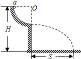 (8分)如图所示,有一光滑的半径可变的1/4圆形轨道处于竖直平面内,圆心O点离地高度为H.现调节轨道半径,让一可视为质点的小球a从与O点等高的轨道最高点由静止沿轨道下落,使小球离开轨道后运动的水平位移S最大,求小球脱离轨道最低点时的速度大小。![]()