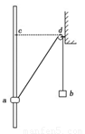 如图所示,光滑固定的竖直杆上套有小物块 a,不可伸长的轻质细绳通过大小可忽略的定滑轮连接物块 a 和小物块 b,虚线 cd 水平.现由静止释放两物块,物块 a 从图示位置上升,并恰好能到达c处.在此过程中,若不计摩擦和空气阻力,下列说法正确的是