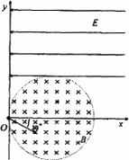 如图所示,真空中有一以(r,0)为圆心,半径为r的圆柱形匀强磁场区域,磁场的磁感应强度大小为B,方向垂直于纸面向里,在yr的范围内,有方向水平向左的匀强电场,电场强度的大小为E;从O点向不同方向发射速率相同的质子,质子的运动轨迹均在纸面内.已知质子的电量为e,质量为m,质子在磁场中的偏转半径也为r,不计重力及阻力的作用,求: