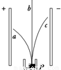 如图中P为放在匀强电场中的天然放射源,其放出的射线在电场的作用下分成a、b、c三束,以下判断正确的是( )
