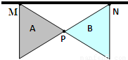 A、B为相同大小的两正三角形板块,如图所示铰接于M、N、P三处并静止。M、N在同一水平天花板上,A板较厚,质量分布均匀,重力为G。B板较薄,重力不计。三角形的竖直边垂直于天花板。那么,B板对铰链P的作用力的方向为____;作用力的大小为 。