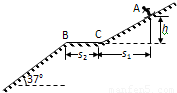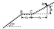 滑雪者从A点由静止沿第一个斜面滑下,经该斜面底端C点进入平台后立即沿水平方向运动(碰撞损失的动能可忽略),在B点水平飞离平台,最后落在倾角为37°的第二个斜面上。已知A、C间的竖直距离为h、水平距离为s1,B、C间的距离为s2,斜面、平台与滑雪板之间的动摩擦因数均为μ,则滑雪者离开B点时的速度大小为