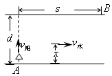 小船从A码头出发,沿垂直于河岸的方向渡河,若河宽为d,渡河速度v船恒定,河水的流速与到河岸的距离成正比,即v水=kx (x≤d/2,k为常量),要使小船能够到达距A正对岸为s的B码头,则: