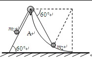 如图所示,左侧是倾角为60°的斜面、右侧是1/4圆弧面的物体A固定在水平地面上,圆弧面底端的切线水平。一根轻绳两端分别系有质量为m1、m2的小球,跨过A顶端的定滑轮,当两球处于平衡状态时,右侧轻绳与水平方向夹角为60°,不计一切摩擦,两小球可视为质点,则两小球的质量之比为( )![]()
