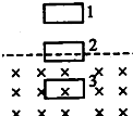 如图所示,匀强磁场存在于虚线框内,矩形线圈竖直下落。如果线圈中受到的磁场力总小于其重力,则它在1、2、3、4位置时的加速度关系为 ( )