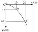 在“研究平抛物体运动”实验中,某同学在运动轨迹上只记录了A、B、C三点,并以A点为坐标原点建立了坐标系,各点的坐标如图所示,则物体作平抛运动的初速度大小为