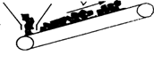 如图所示,传送带向右上方匀速运转,石块从漏斗里竖直掉落到传送带上,然后随传送带向上运动,下述说法中正确的是( )![]()