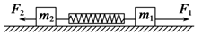 如图所示,两个质量分别为m1=2 kg、m2=3 kg的物体置于光滑的水平面上,中间用轻质弹簧秤连接.两个大小分别为F1=30 N、F2=20 N的水平拉力分别作用在m1、m2上,则![]()
