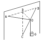 如图所示装置中,AO、BO是两根等长的轻绳,一端分别固定在竖直墙上的同一高度的A、B两点,∠AOB=