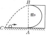 如图9所示,一光滑的半径为R的半圆形轨道(B为最高点,A为最低点)竖直放在水平面上,一个质量为m的小球以某一速度冲上轨道,当小球将要从轨道口飞出时,对轨道的压力恰好为零,则小球落地点C距A处多远?![]()