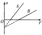 如图所示,A,B两条直线是在A,B两地分别用竖直向上的力F拉质量分别是mA和mB的物体实验得出的两个加速度a与力F的关系图线,由图分析可知( )