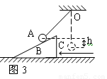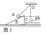 如图3所示,重球A放在光滑的斜面体B上,A、B质量相等,在力F的作用下,B在光滑水平面上向左缓慢移动了一段距离,A球相对于C点升高h,若突然撤去F,则: