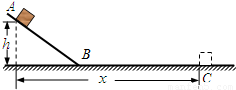 如图所示,一物体从斜面上高为h处的A点由静止滑下,滑至斜面底端B时,因与水平面碰撞仅保留了水平分速度而进入水平轨道,在水平面上滑行一段距离后停在C点,测得A、C两点间的水平距离为x,设物体与斜面、水平面间的动摩擦因数均为μ,则