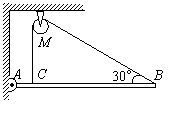 重为80N的均匀直杆AB一端用铰链与墙相连,另一端用一条通过光滑的小定滑轮M的绳子系住,如图所示,绳子一端与直杆AB的夹角为30°,绳子另一端在C点与AB垂直,