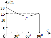 物体以大小不变的初速度v0沿木板向上滑动,若木板倾角θ不同,物体能上滑的距离x也不同,如图为物体在木板上滑动的x-θ图线。则图中最低点P的坐标为 、 (g=10m/s2)。