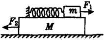 如图,一轻弹簧左端固定在长木块M的左端,右端与小木块m连接,且m、M及M与地面间接触光滑。开始时,m和M均静止,现同时对m、M施加等大反向的水平恒力F1和F2。在两物体开始运动以后的整个运动过程中,对m、M和弹簧组成的系统(整个过程中弹簧形变不超过其弹性限度),正确的说法是