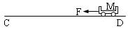 如图所示,静止在水平面上质量M=0.2kg小车在F=1.6N的水平恒力作用下从D点启动,运动一段时间后撤去F。当小车在水平面上运动了s=3.28m时到达C点,速度达到v=2.4m/s。已知车与水平面间的动摩擦因数