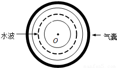 如图所示,圆环形的充气气囊平放在水平的玻璃板上,下边与玻璃板密闭接触且内部装水,当用手有节奏的拍打气囊时,形成的圆环形水波由边缘向中心O点传播,则水面上______(选填“能”或“不能”)观察到水波的干涉现象.水波叠加的结果使O点的振动______(选填“加强”、“减弱”或“不能确定”).