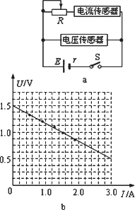 某同学利用图a所示电路来测量一节干电池的电动势和内电阻,根据实验数据绘得图b所示的U~I图线.由该图线可求得这节干电池的电动势E=________V、内电阻r=________Ω.