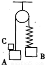 如图所示,两个质量均为m的物体A和B,由轻绳和轻弹簧连接绕过不计摩擦力的定滑轮,系统静止,将另一质量是m的物体C,轻放在A上,在刚放上A的瞬间( )