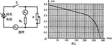 (8分)2010年世博会在上海举行,本次世博会大量采用低碳环保技术,太阳能电池用作照明电源是其中的亮点之一.硅光电池是太阳能电池的一种,某同学为了测定某种硅光电池的电动势和内电阻,设计了如图甲所示电路,图中与A.串联的定值电阻的阻值为R0,电流表视为理想电表,在一定强度的光照下进行下述实验: