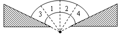 将四块相同的坚固石块垒成圆弧形的石拱,其中第3、4块固定在地基上,第1、2块间的接触面是竖直的,每块石块的两个侧面间所夹的圆心角为30°。假设石块间的摩擦力可以忽略不计,则第1、2块石块间的作用力与第1、3块石块间的作用力的大小之比值为 ( )