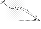 如图,质量m=60kg的高山滑雪运动员,从山上的A点由静止开始沿雪道滑下,从B点水平飞出后又落在与水平面成倾角θ=37°的斜坡上C点.己知AB两点间的高度差为h=25m,B、C两点间的距离为S=75m,(g取l0m/s2 sin37°=0.6,cos37°=0.8),求:![]()