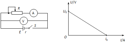 某同学利用如图所示的电路测量电源的电动势和内电阻。他利用测量出来的几组电压和电流值画出了U—I图线。根据图线求出的电源电动势E=____________,电源的内电阻r=_______________。