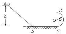 (14分)如图所示,在竖直平面内,由斜面和圆形轨道分别与水平面相切连接而成的光滑轨道,圆形轨道的半径为R。质量为m的小物块从斜面上距水平面高为h=2.5R的A点由静止开始下滑,物块通过轨道连接处的B、C点时,无机械能损失。求:![]()