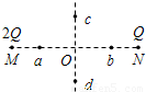 如图所示,正点电荷2Q、Q分别置于 M、N两点,O点为MN连线的中点。点a、b在MN连线上,点c、d在MN中垂线上,它们都关于O点对称。下列说法正确的是![]()