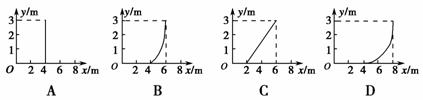 光滑水平面上有一直角坐标系,质量m=4 kg的质点静止在坐标原点O处.先用沿x轴正方向的力F1=8 N作用了2 s;然后撤去F1,并立即用沿y轴正方向的力F2=24 N作用1 s,则质点在这3 s内的轨迹为图中的 ( ).