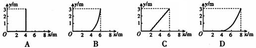 光滑水平面上有一直角坐标系,质量m=4kg的质点静止在坐标原点O处。先用沿+x轴方向的力F1 = 8 N作用了2s;然后搬去F1,并立即用沿+y方向的力F2=24N作用1s,则质点在这3s内的轨迹为图中的( )