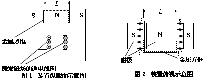 。如图所示,金属方框水平放在磁极的狭缝间,方框平面与磁场方向平行。设匀强磁场仅存在于异名相对磁极的狭缝间,其它地方的磁场忽略不计。可认为方框的